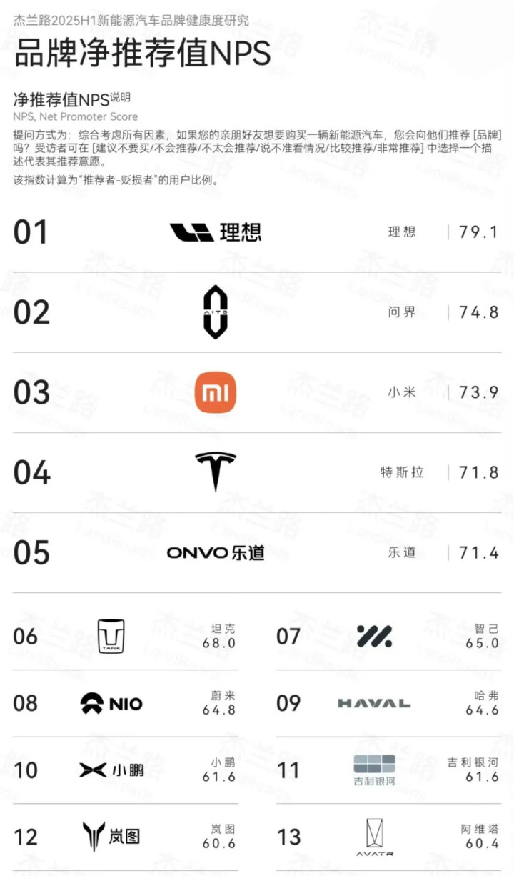至于车企都比较关注的品牌净推荐值NPS榜单,阿维塔排名第十三,排在岚图之后,上汽大众之前。所谓品牌净推荐值,即受访者会向亲朋好友推荐某品牌的意愿值。