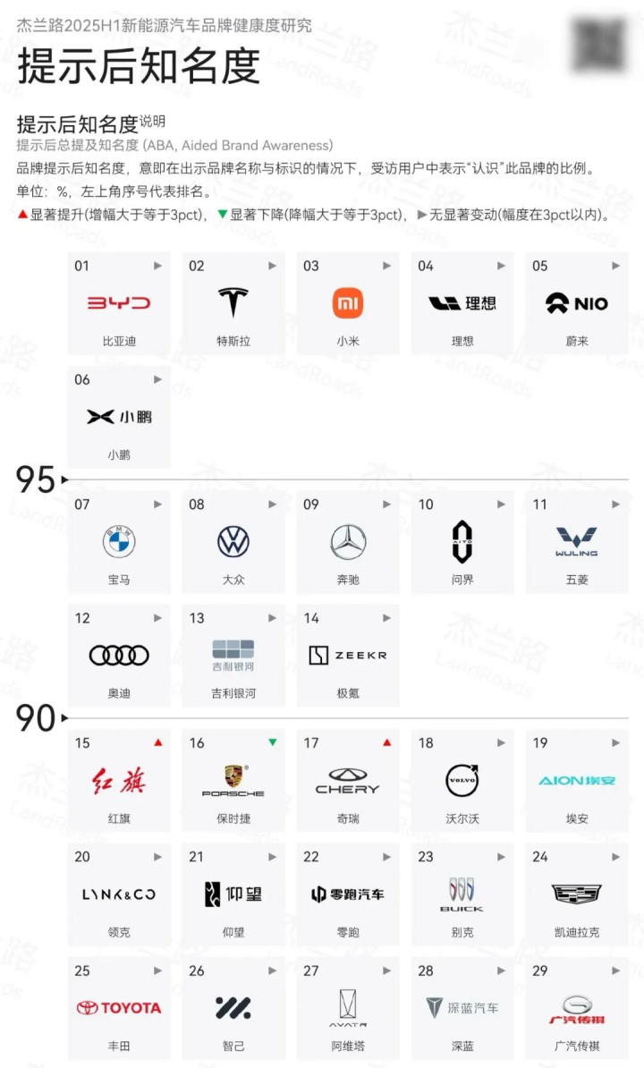 据知名市场调研机构杰兰路发布的一份研究,阿维塔目前的品牌力与特斯拉、小米以及“蔚小理”等新势力代表有明显差距。数据显示,在出示品牌名称与标识的情况下,认识阿维塔品牌的人不足受访者的90%,上述提到的“特米蔚小理”均在95%以上。